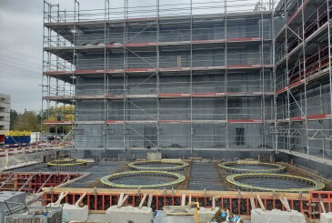 Beim Projekt GOSU in Neunkirch nimmt das Ganze langsam aber sicher Gestalt an. Die Bodenplatte vom Schulhaus und der Tiefgarage ist fast abgeschlossen und die ersten Deckenetappen sind breits betoniert.