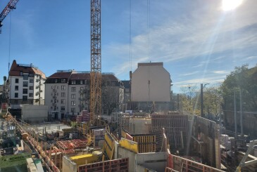 Die aufwändigen Arbeiten im Untergrund für das Projekt Kornhaus-Rötelstrasse in Zürich sind langsam aber sicher abgeschlossen. Über Terrain gibt es nochmals sechs Geschosse, wobei insgesamt 96 Wohnungen für die Zürcher Bevölkerung erstellt werden.